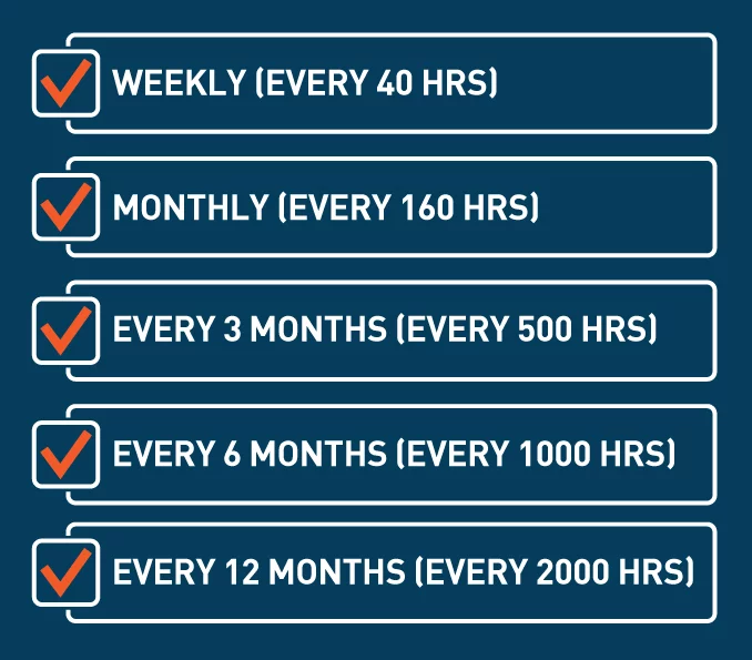 Just as important as using the appropriate fluids, maintaining an appropriate service schedule is the way to keep your compressor operating at maximum performance with minimum cost. You should be going through an air compressor preventative maintenance checklist for a variety of time intervals to get the premium performance from your Quincy compressor.