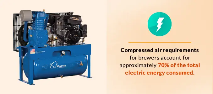 Brewing and distilling is a highly energy-intensive process, and in combination with refrigeration and packaging, compressed air requirements for brewers consume approximately 70 percent of the total electrical energy involved. Because of the high demand for compressed air systems in packaging, energy efficiency is essential in reducing energy expenses — especially for microbreweries who typically do not generate the same kind of profit margins as larger breweries.