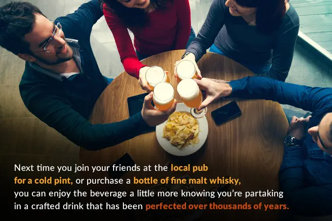 Next time you join your friends at the local pub for a cold pint, or purchase a bottle of fine malt whisky, you can enjoy the beverage a little more knowing you’re partaking in a drink that has been perfected over thousands of years.
