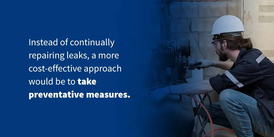 - Reduce downtime: Repairing leaks typically comes with downtime, so preventative maintenance can help you avoid this and prevent more significant issues that can result from them.