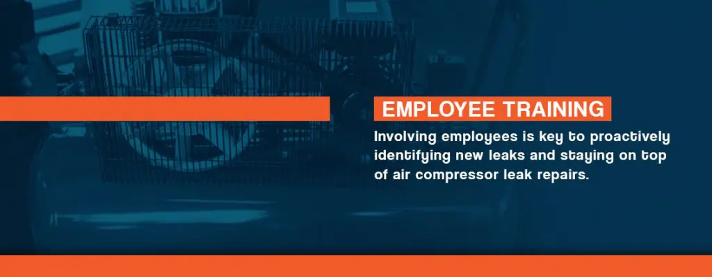 Involving employees is key to proactively identifying new leaks and staying on top of air compressor leak repairs. They are consistently working with and around the tools that could indicate leaks, so they are one of your best sources for finding issues. Educate employees on the cost of air leaks, so they share the same concern as you when it comes to identifying and fixing those leaks. Develop a team-wide sense of responsibility that gets everyone aware of leaks and the problems they cause. Some facilities incorporate One Point Lessons around identifying and reporting leaks as part of their start-of-shift activities. Other, more detailed training sessions can also help.
