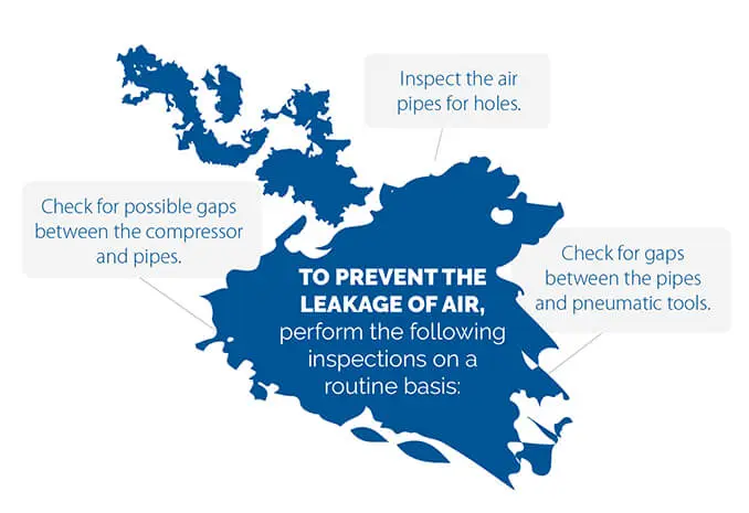 Simply put, there’s nothing to be gained from leaks in a compressed air system. The problems associated with leaks are easier to spot and remedy, or prevent altogether, with routine inspections along all the parts that transport air from the compressor to the end tools.