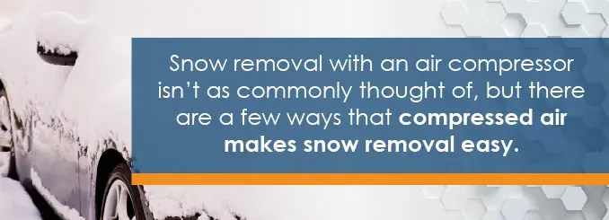 One of the biggest jobs in the winter is moving snow. Snow removal with an air compressor isn’t as commonly thought of, but there are a few ways that compressed air makes easy work of some of the trickier methods of removing snow. Moving it off the driveway, out of the way of solar panels and out of the way of endangering people are easy tasks that can be done quickly and efficiently with the power of an air compressor.