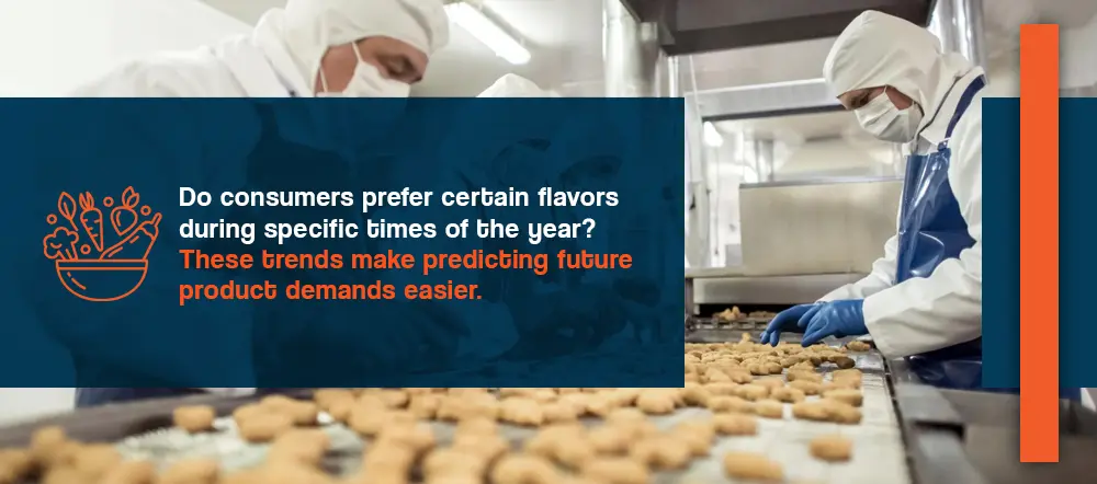 When you know which foods will be in demand before the season comes, you can prepare your facility to change product production if needed. Forecasting market demands is just another method for streamlining your food manufacturing process by producing the products your customers want when they want them.