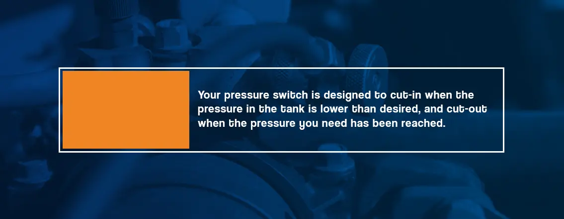 Constant air pressure at a specific volume will keep the diaphragm deformed. When the air pressure in your tank drops far enough, the membrane will revert back to its normal shape. Once this pressure — called cut-in pressure — lightens to a certain level, an internal operator within the diaphragm will deform in an opposite manner. This movement closes the circuit and starts the motor back up again.