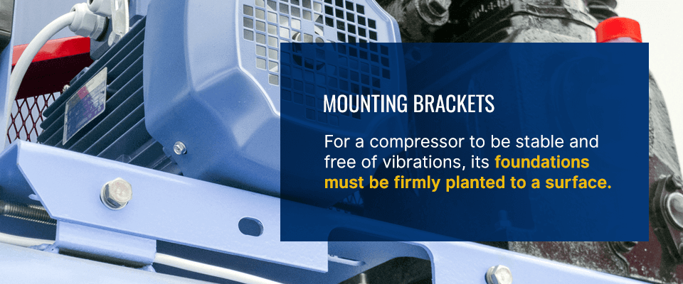 - Demasiado suelto: Los soportes de montaje sueltos no darán un soporte adecuado a un compresor de aire. Si los soportes parecen flojos, revisa dos veces los accesorios de montaje y aprieta si es posible o cambia si es necesario.