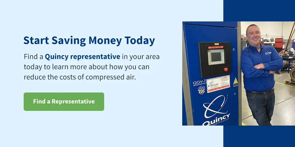 Encuentra hoy mismo un representante de Quincy en tu zona para saber cómo puedes reducir los costes del aire comprimido.