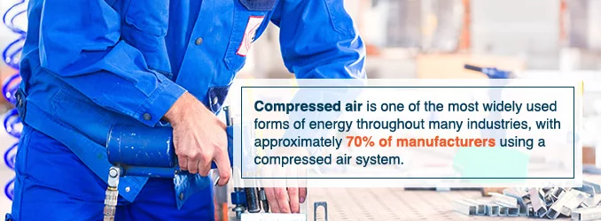 Muchas industrias utilizan sistemas de aire comprimido para alimentar herramientas y realizar tareas. Sin embargo, el aire comprimido consume una cantidad significativa de energía, lo que resulta en mayores costes para las plantas de fabricación. Un caballo de fuerza de aire comprimido requiere 8 caballos de potencia de electricidad. Si los sistemas funcionan con eficiencia limitada, las instalaciones podrían consumir más energía de la necesaria para las operaciones diarias.