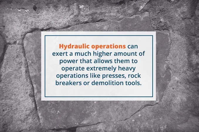 En la industria industrial, especialmente en la manufactura, se pueden utilizar sistemas hidráulicos de alta potencia en lugar de los sistemas de aire comprimido. Las operaciones hidráulicas pueden ejercer una potencia mucho mayor que les permite operar operaciones extremadamente pesadas como prensas, romperocas o herramientas de demolición. Podrían ser la mejor opción para algunas aplicaciones, pero hay varias aplicaciones que pueden manejarse adecuadamente tanto por neumática como hidráulica. Estas son las principales ventajas de usar herramientas neumáticas frente a las hidráulicas: