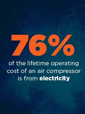 Actualizar tu compresor o equipo del sistema de aire puede hacerte pensar en el coste principal. Aunque el coste de los equipos y la instalación nuevos es sin duda una inversión considerable, puede que sea la opción que debes tomar para un sistema eficiente. Aunque puedas tener altos costes iniciales, el mayor gasto del aire comprimido proviene principalmente de la electricidad necesaria para hacer funcionar tu sistema de aire comprimido.