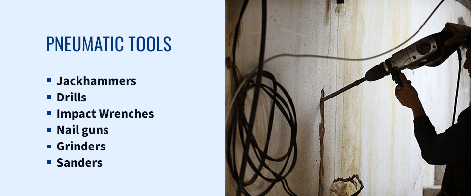 Las herramientas de construcción neumáticas, también llamadas neumáticas, permiten una amplia variedad de aplicaciones, incluyendo: