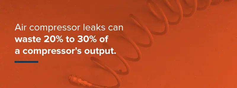 • Arreglar fugas: Arregla primero los agujeros y fugas más grandes y luego los más pequeños. Las fugas significan que el compresor necesitará mucha más potencia para mantener la presión del aire. A veces las fugas desperdician entre el 20 y el 30 por ciento de la salida del compresor. Cualquier fuga de aire puede costarte miles de euros al año.