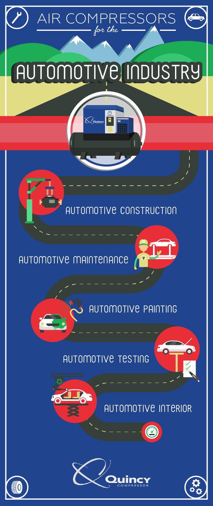 Check out this great graphic of the many ways that air compressors play a role in the automotive industry.