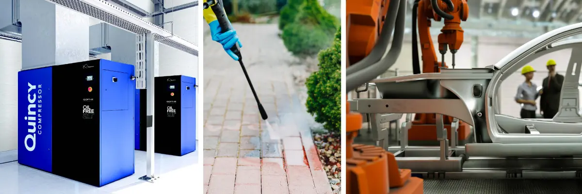 If you’re looking to buy a new air compressor, you’ll want to understand the differences between each type of compressor. Certain units will work better in some industries than others. Quincy Compressors can help you find the air compressor that suits all of your needs. Our experts have serviced all types of industries for nearly a century, so we have the knowledge and experience to pair you with the best unit for your requirements. Find one of our locations near you, or contact us today!