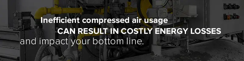 Inefficient compressed air usage can result in costly energy losses and impact your bottom line. In addition, proper maintenance and inspection for air leaks are also essential for keeping your system operating at optimal performance and efficiency.