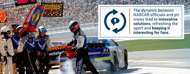 The dynamic between the governing body and the pit crews is one that breeds innovative solutions to an established method and practice. While it may be a constant battle to keep things interesting, reinvigoration assures the survival of the sport.