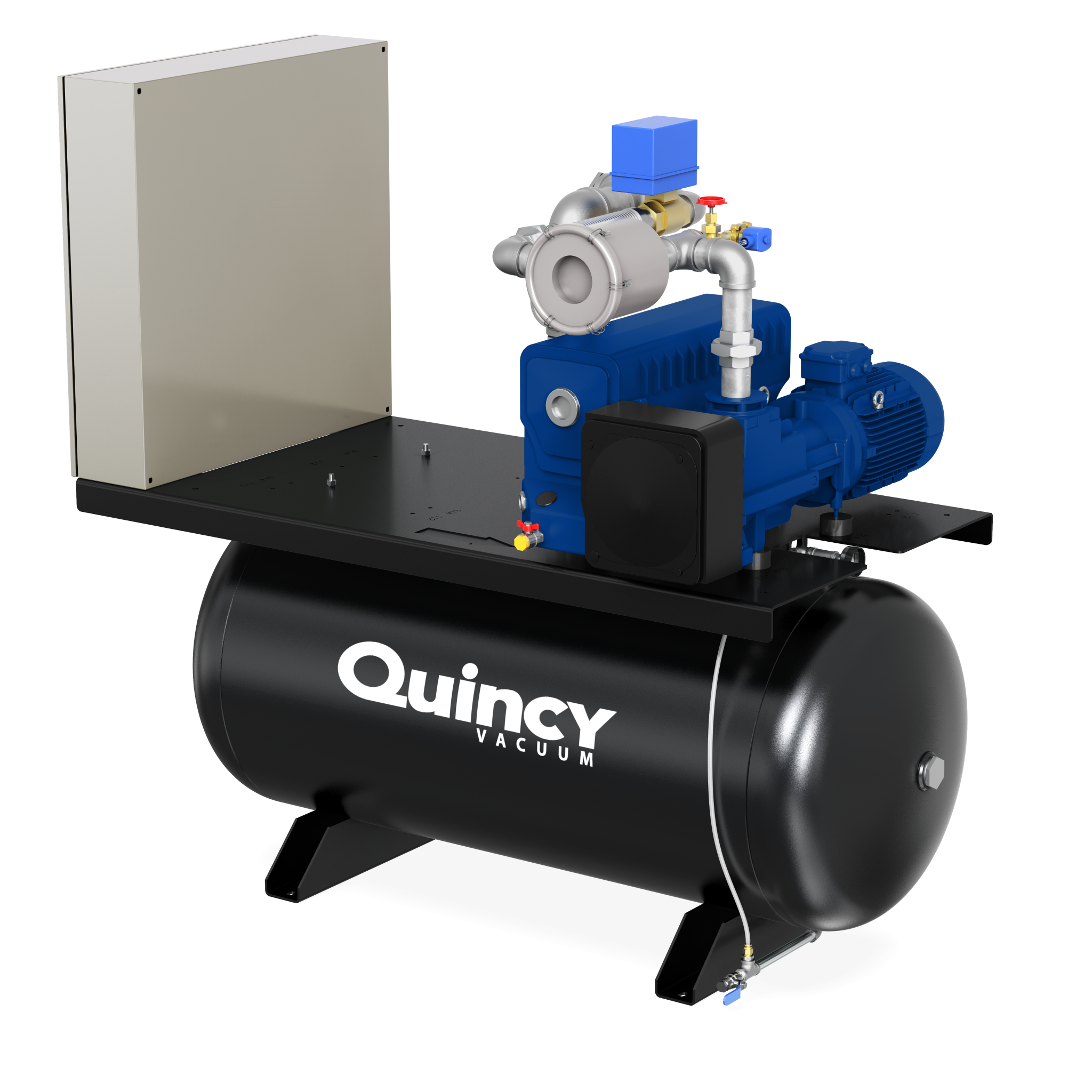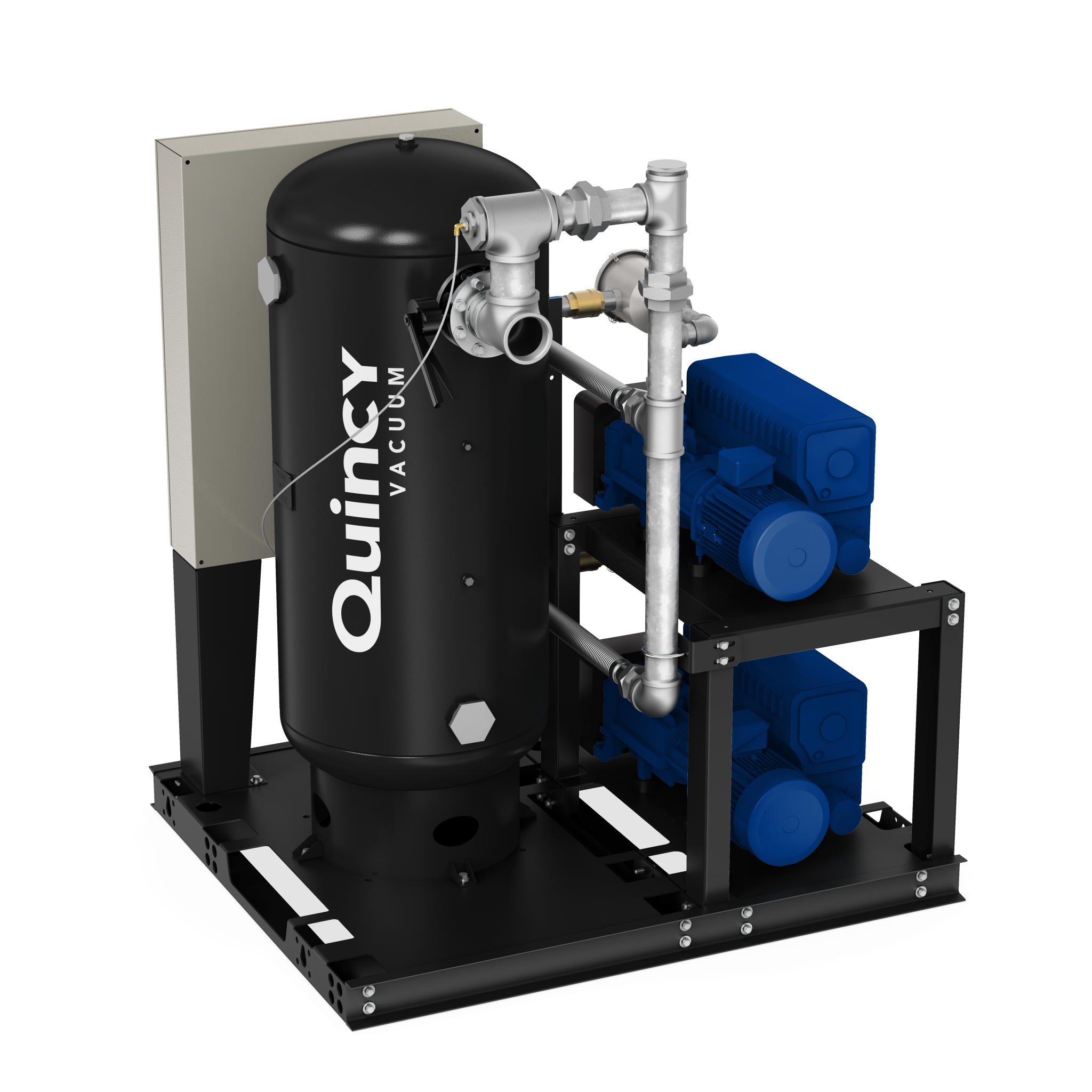 Quincy QV systems combine rotary vane pumps with all the peripheral components and controls necessary to operate the pump(s) as a central system. This makes them an excellent choice for customers interested in protecting their pumps properly and maintaining a stable vacuum level. The best part? Quincy has already done all the engineering, component identification, and supply chain management, leaving customers free to focus on their operation, not vacuum system design!