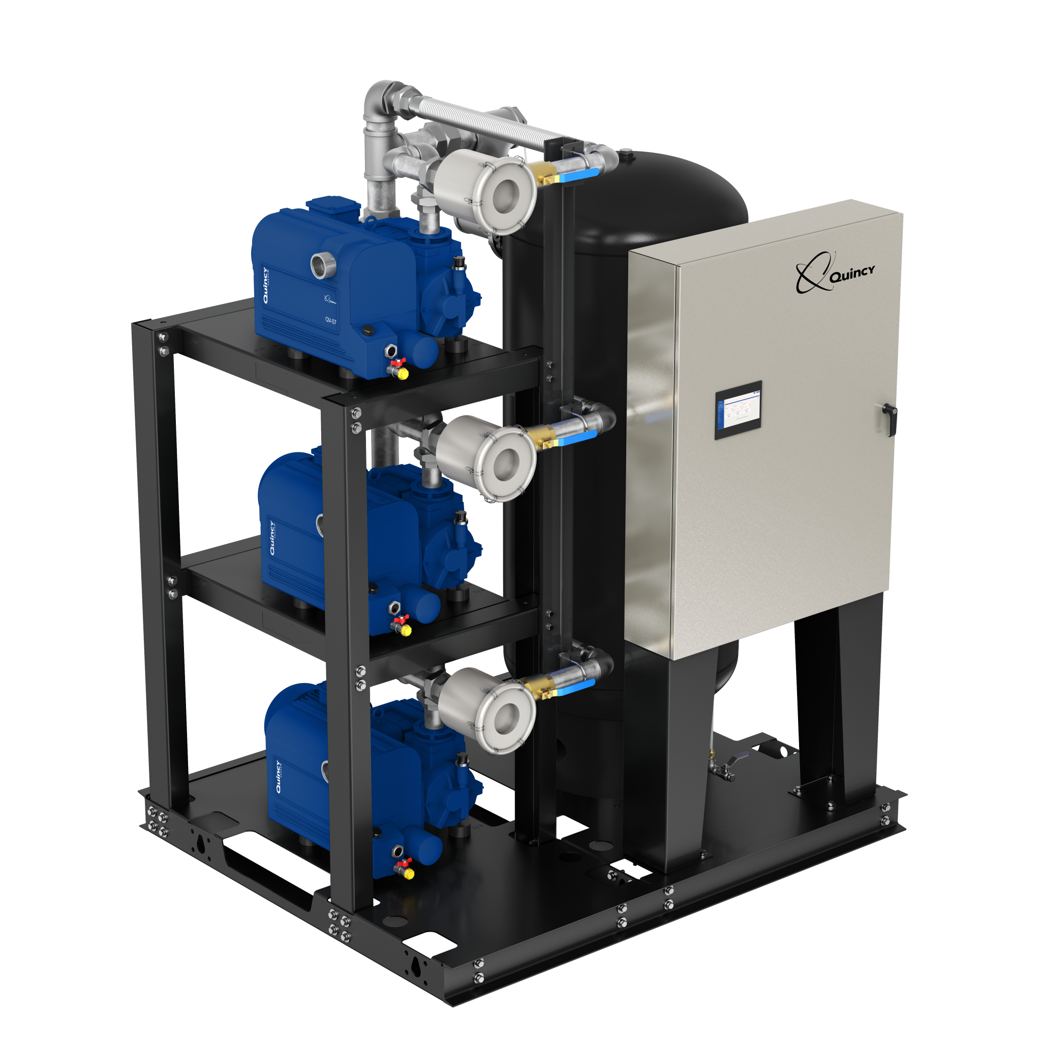 The Quincy QV systems combine rotary vane pumps with all the peripheral components and controls necessary to operate the pump(s) as a central system. The system will maintain a desired set point, while providing all the necessary protections to the pumps. Leave the systemizing up to Quincy!