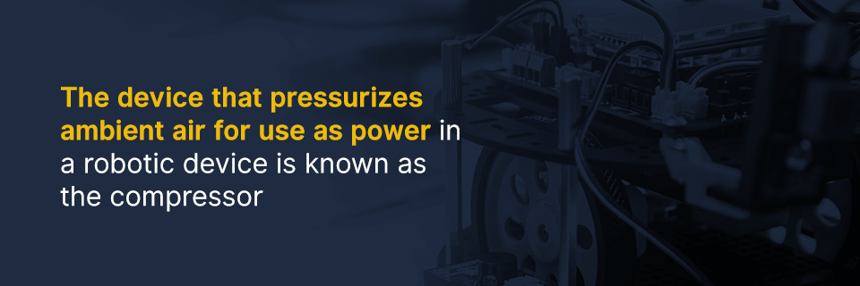The device that pressurizes ambient air for use as power in a robotic device is known as the compressor. During operations, the compressor can become heated to the point where neighboring parts can get damaged if the unit lacks sufficient ventilation and cooling capabilities. It is, therefore, crucial to have a robot’s pneumatic system equipped with a fan.