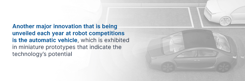Another major innovation that is being unveiled each year at robot competitions is the automatic vehicle, which is exhibited in miniature prototypes that indicate the technology’s potential. As more people anticipate a future without gas-powered vehicles, the robot vehicles on display at these events serve as indicators of how the streets could possibly look within a few decades. Most importantly, these miniature models help demonstrate how vehicles could ultimately run on compressed air and potentially significantly reduce the world’s reliance on petroleum-based products. Moreover, these devices can also suggest the robotic features that will likely be included in these vehicles of the future.